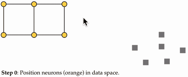 所有神经元组织成一个网络,网格可以是六边形,四边形,甚至是链形。网格的结构通常取决于输入的数据在空间中的分布。SOM的作用是将网格铺满数据存在的空间。