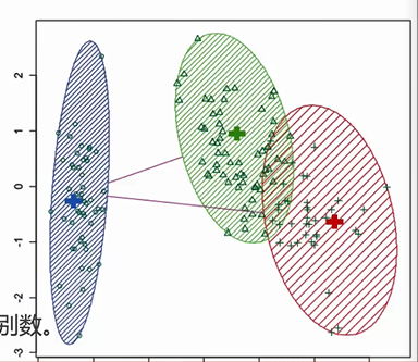 这里解释以下为啥SSB前面会乘上一个系数,因为SSB计算的是类间权重,因为不同的类的样本个数不一样,如下图,先计算每类中心与总体均值(在下图的空白处)的差值的平方,再按照权重累加所有的差值。