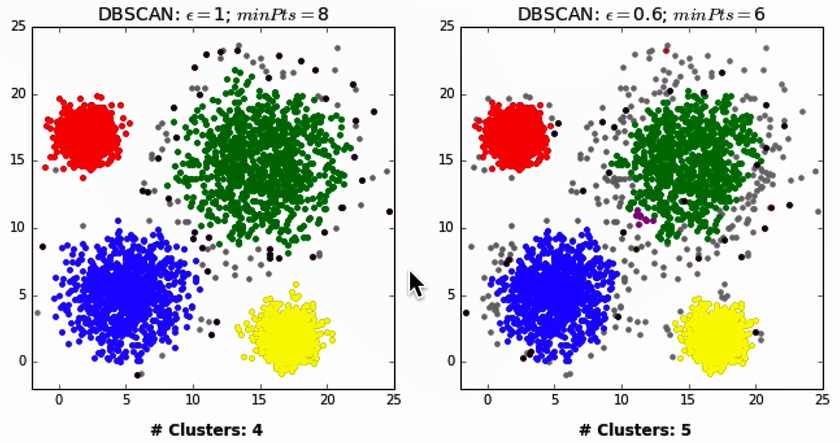 | 算法缺点:领域的不同可能创造更多的噪声点: |