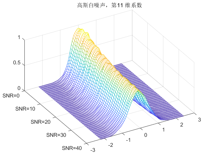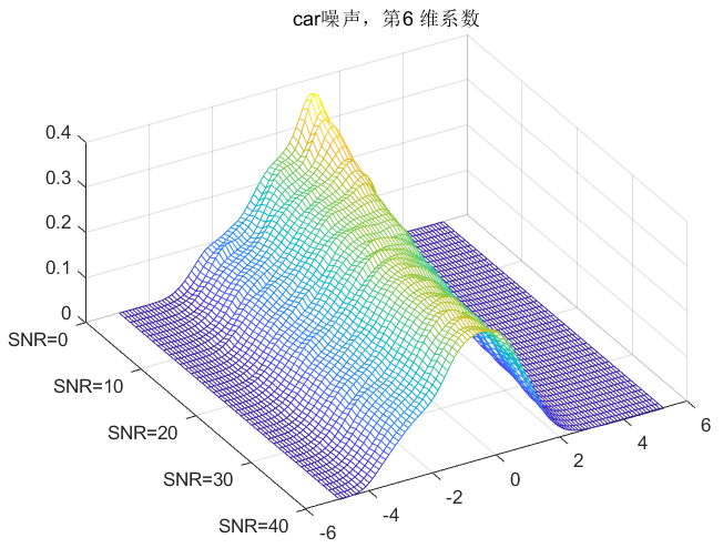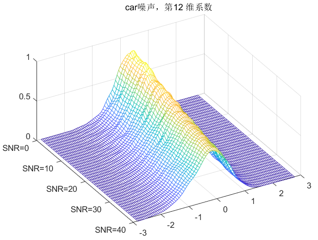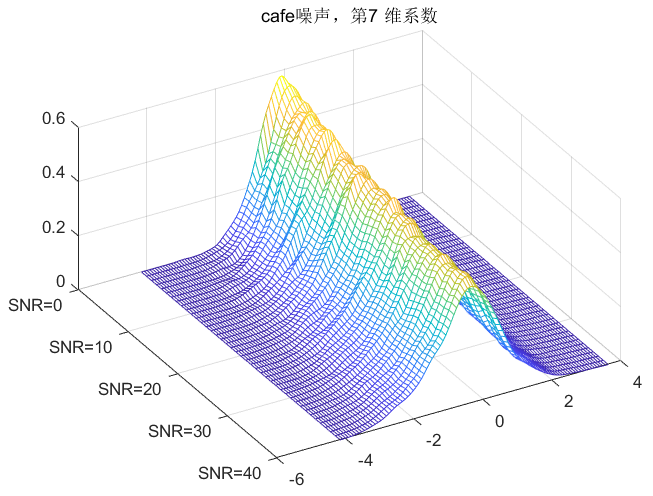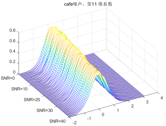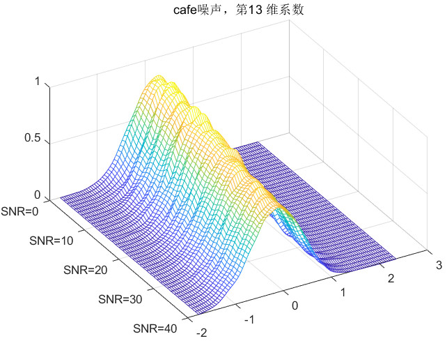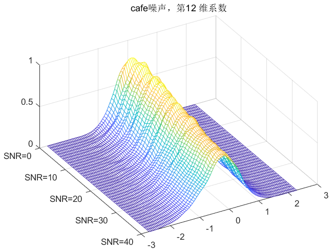 [pdf_by_SNR_1,xi_1] = plot_pdf_2D(clean_cep,k,'w'); [pdf_by_SNR_2,xi_2] = plot_pdf_2D(noise_cep,k,'w'); [pdf_by_SNR_3,xi_3] = plot_pdf_2D(trainSpeakerData,k,'w');